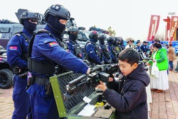 演练结束后,警用装备展示区迅速成为全场瞩目的焦点。一排排威风凛凛的防爆装甲车整齐排列,各类警用装备依次展示。特警队员们热情地向现场群众讲解着这些装备的用途、性能,以及在反恐处突中的实际应用。