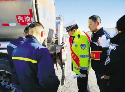 春运期间,自治区公安厅交管局高速公路一支队集宁大队派员深入乌兰察布中石油配送公司,对企业危险用品运输安全工作进行检查,同时开展了“平安春运、交警同行”春运宣传直播活动。 杨燕摄