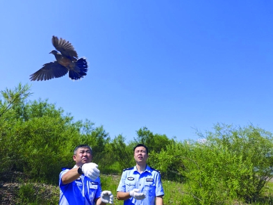 具有野生动物救助经验的民警宋江波,辨识出该鸟为国家“三有”保护动物山斑鸠。鉴于当时救助站已下班,民警将其带回分局精心照料,为其提供了饮水和适宜的休憩环境。次日,幼鸟恢复进食能力。后经专家远程鉴定,这只山斑鸠幼鸟身体状况符合放生条件。8月5日,民警将幼鸟在原发现地附近的树林放归自然。