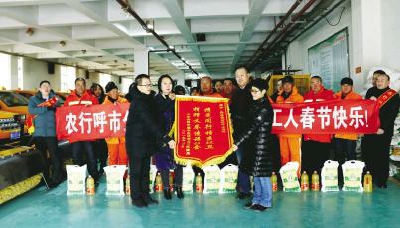 近日,农行呼和浩特分行开展了“关注青城环卫工人送爱心活动”,为呼市赛罕区环卫局300多名环卫工人赠送了食用油、面粉等慰问品,还向环卫工人宣讲了预防金融诈骗、安全用卡等金融知识。近年来,该分行在全市各网点为环卫工人设立休息区,开设爱心窗口,受到了广大群众的好评。 李占成摄