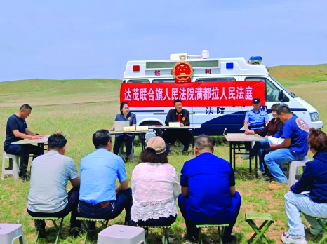 为将矛盾化解在前端,满都拉法庭主动融入辖区综治中心,积极与派出所、司法所联动。今年4月,某风电企业在施工过程中污染了达尔汗苏木牧民孟某的草场,双方就赔偿问题僵持不下。经苏木综治中心调解无果后,满都拉法庭法官通过开展实地查勘、情理法结合疏导,最终促成双方达成和解。