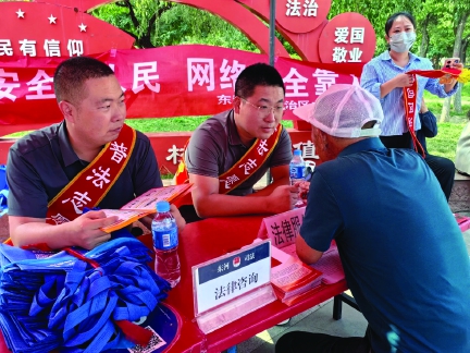 在基层骨干方面,东河区整合司法、妇联、审计、教育等部门的102名专业人才,组建起区级普法志愿服务队,走进学校、企业、商圈、工地和乡村,把服务送到群众“家门口”。此外,培育了575名“法律明白人”和82户“学法用法示范户”,通过“身边人讲身边法”的方式,将法律知识融入日常生活的点点滴滴,增强普法的亲和力与感染力;培育了49位“法治副村长(副主任)”,依托他们“知民情、熟民意”的优势,引导广大村民积极主动尊法、学法、守法、用法,全面提升乡村法治建设水平。