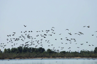 秋风轻拂,掠过赤峰阿鲁科尔沁湿地的水面,泛起细密的波纹。这片位于黑哈尔河流域与宝力格水库交汇之处的湿地,在秋日里迎来了今年首批南迁的中转“客人”--近5万只大雁和白天鹅。它们或排着整齐的“人”字队形振翅高飞,展现出迁徙的壮美;或在芦苇间休憩,与湿地环境和谐相融,构成了一幅灵动而和谐的生态画卷。