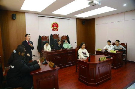 近日,通辽市霍林郭勒市人民检察院青少年法治教育基地迎来了霍林郭勒市第一中学初一年级四班的全体师生,开展了一场生动而深刻的法治教育实践活动。在模拟法庭、互动体验区等功能区域,同学们通过角色扮演、情景模拟等方式,亲身体验法庭审判流程,感受法律的庄严与权威,在互动中深化了对法律知识的理解和运用,在亲身参与中感受到了法律的庄严与公正。