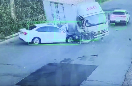 近日,乌兰察布市凉城县旧S102线泉卜子西村村口发生一起两车相撞事故,起因为小轿车驾驶人岳某在视线不良的村口强行借道超车,与对向超速驶来的货车相撞,致两车严重损坏,现场一片狼藉。