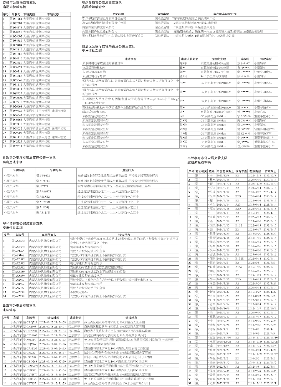 全区公安交管部门查处违法车辆、企业、行为人等曝光名单