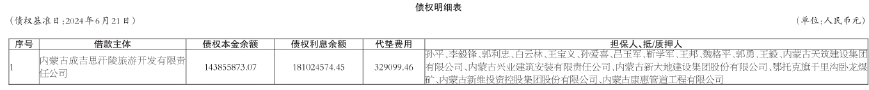 备注:以上债权项下利息(含罚息、复利)以相关合同/协议、生效法律文书及法律法规的规定计算为准。
