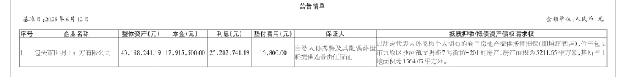 浙江省浙商资产管理股份有限公司(以下简称浙商资产)与内蒙古祺乐项目管理有限公司(以下简称祺乐公司)于2025年6月12日签署了《债权转让协议》,浙商资产将其对下列公告清单中所列债务人及其担保人享有的主债权、从权利及其项下全部权利、权益以及由此衍生的全部权利、权益依法转让给祺乐公司。祺乐公司已支付完毕全部债权转让价款,依法取得标的债权所有权,为标的债权的合法权利人。浙商资产作为资产转让方、祺乐公司作为资产受让方,依法联合通知该等资产有关的债务人、担保人和其他相关当事人资产已转让的事实。