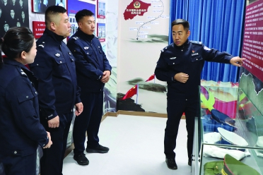 穿过服务大厅,走廊尽头的“党建+警史馆”诉说着巴日嘎斯台派出所的变迁,老照片、旧警服、泛黄的纸页记录着巴日嘎斯台警务工作的点点滴滴。“这是80年代的警车,这是90年代的老派出所,直到现在这个新址,咱们派出所已经历经好几次搬迁了……”该所所长李志博指着墙上的照片,为新入职的民辅警讲述着过去的故事。如今,警史馆已成为该所的“红色课堂”和精神高地。