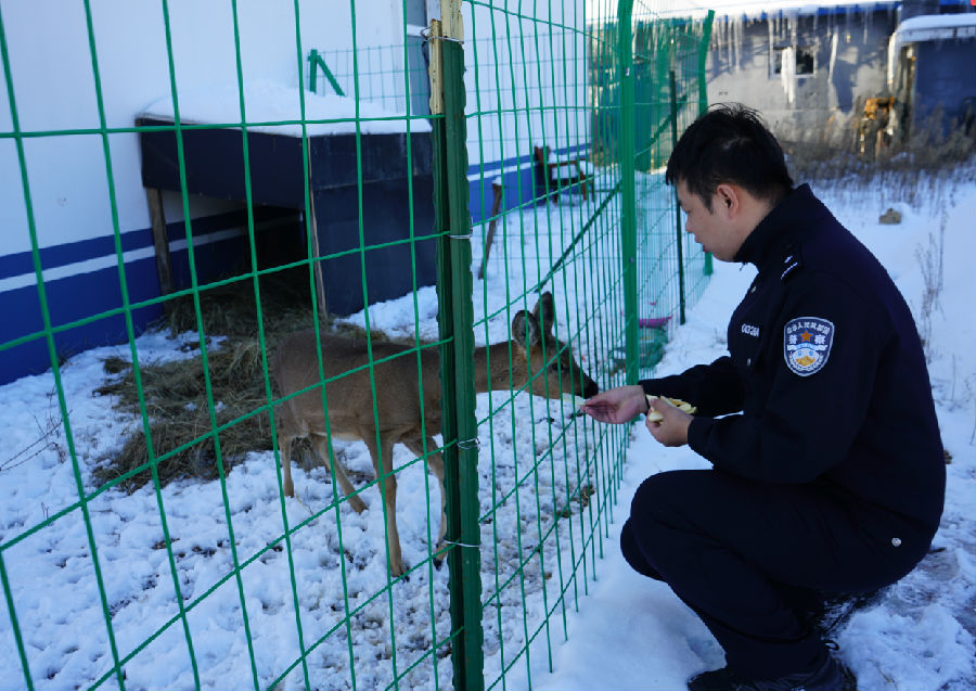 “2006年,我刚入警时,跟着老民警巡山,那时候狍子的足迹还很稀少。”王春雷翻开一本泛黄的旧日志,2010年的记录里,只见过两次狍子幼崽。而今年,红外相机就已拍到5次驼鹿带崽的画面。“生态好了,动物多了,我们的服务也得跟上。”如今,他不仅要记录动物活动情况,还学了好多兽医常识。就在前几天,他在雪地里发现一只冻僵的狍子幼崽。他立即用体温焐热幼崽,又给它喂了些稀释的奶粉,等幼崽能蹦跶了再放归自然。“现在同事都说我是半个兽医。”王春雷笑着说。