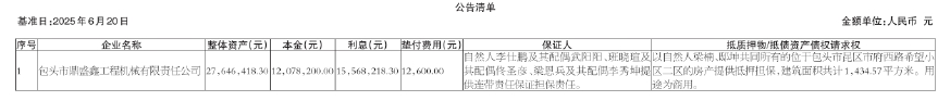 内蒙古龙盛新材料科技有限公司(以下简称“龙盛新材料公司”)与王东(身份证号:152824197909193918)于【2025】年【11】月【24】日签署了《债权转让协议》,龙盛新材料公司将其对下列公告清单中所列债务人及其担保人享有的主债权、从权利及其项下全部权利、权益以及由此衍生的全部权利、权益依法转让给王东。王东已支付完毕全部债权转让价款,依法取得标的债权所有权,为标的债权的合法权利人。龙盛新材料公司作为资产转让方、王东作为资产受让方依法联合通知该等资产有关的债务人、担保人和其他相关当事人资产已转让的事实。