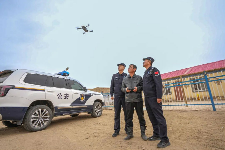 2023年,马鬃山边境派出所组建成立了大漠无人机警队,通过航拍、航巡等飞行作业,让边境管控实现“空中覆盖”。在此基础上,宝音纳牵头搭建了巡边平台,整合辖区矿点信息、流动人口数据等各类资源信息,实现了智能预警、精准调度。