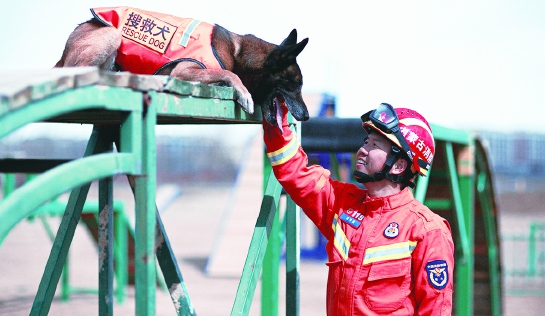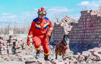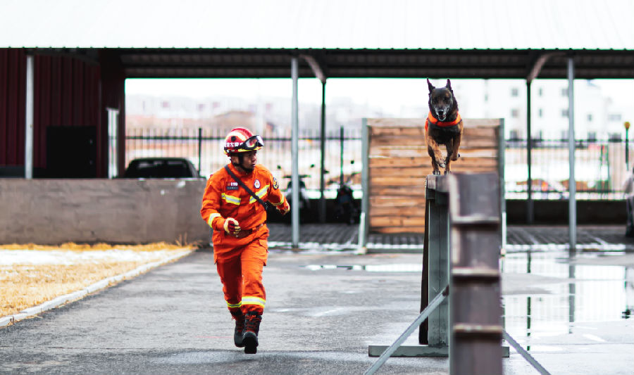 2021年10月,全国首届消防行业职业技能大赛在南京举办,这场赛事备赛时间短、比赛形式新,融入了国际搜救犬行业先进理念,对训导员和搜救犬的综合素质要求极高。作为第10个出场的选手,“宝强组合”面临着前所未有的压力。“把训练场当实战场,每一个细节都要做到完美,才能让它的超凡能力不打折扣。”赛前,宝音白尔按照赛事标准一比一搭建训练场地,逐科目打磨、逐细节梳理。比赛中,他们在攀登障碍科目中动作行云流水,在箱体搜救中精准运用创新技法,“小强”超强的嗅觉再次发挥关键作用,快速定位“被困人员”,“人犬合一”的默契配合赢得现场观众阵阵掌声。通过中央电视台新闻频道的实时转播,全国观众见证了这对北疆搭档的高超技艺,最终他们斩获搜救犬训导员项目全国季军,为内蒙古消防赢得了荣誉。
