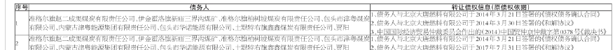 3、本公告清单所列债务人之一“包头市津粤煤炭有限公司”目前已进入破产重整程序。本次债权转让就该债务人而言,相关权利申报、确认及行使须遵循《中华人民共和国企业破产法》之规定及受理法院、破产管理人的要求进行。本次联合公告不替代、不免除受让方依法定程序向破产管理人申报债权的义务。