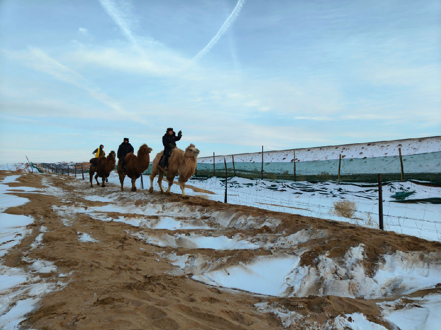 在阿拉善盟额济纳旗的浩瀚戈壁上,阿拉善盟护路办骆驼骑行队,以传承千年的游牧智慧,踏沙而行,守护着铁路的平安。
