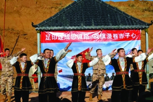 行军队伍穿行于多变地形之间,从平缓地带到起伏坡地,从硬质路面到松软沙土,每一步都是对体能与意志的双重考验。休整期间,快板小队、舞狮展演相继登场,来自“兵写兵、兵演兵”的原创节目,为行军增添了别样风采。