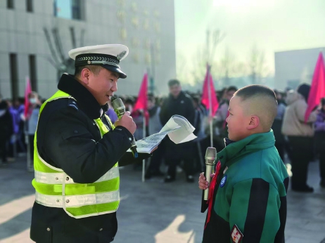 近日,阿拉善盟高新区公安分局交通管理大队民警走进阿拉善高新区第二小学,开展了一场精彩纷呈的交通安全知识竞赛活动,让学生们在竞赛中牢记安全出行要点,筑牢校园交通安全防线。