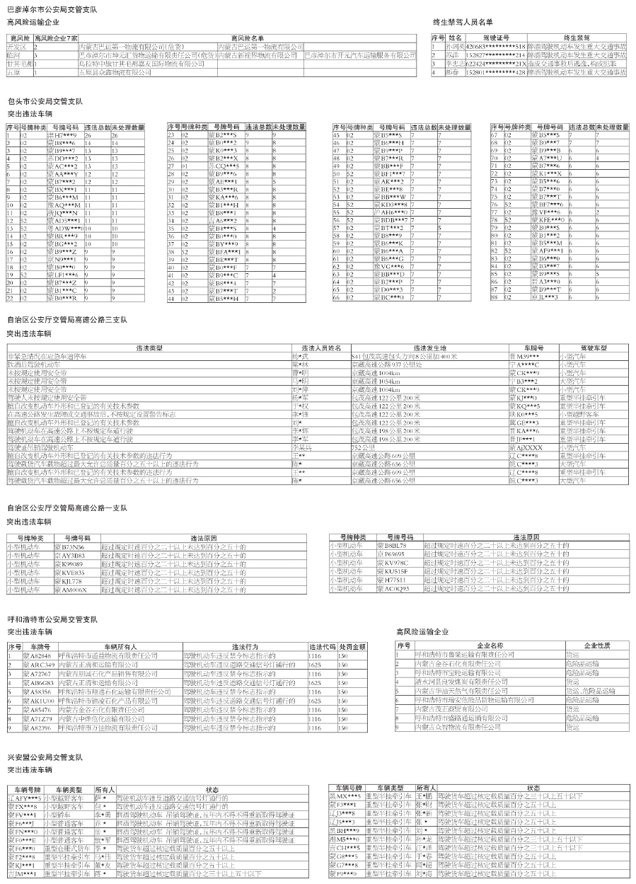 全区公安交管部门查处违法车辆、企业、行为人等曝光名单