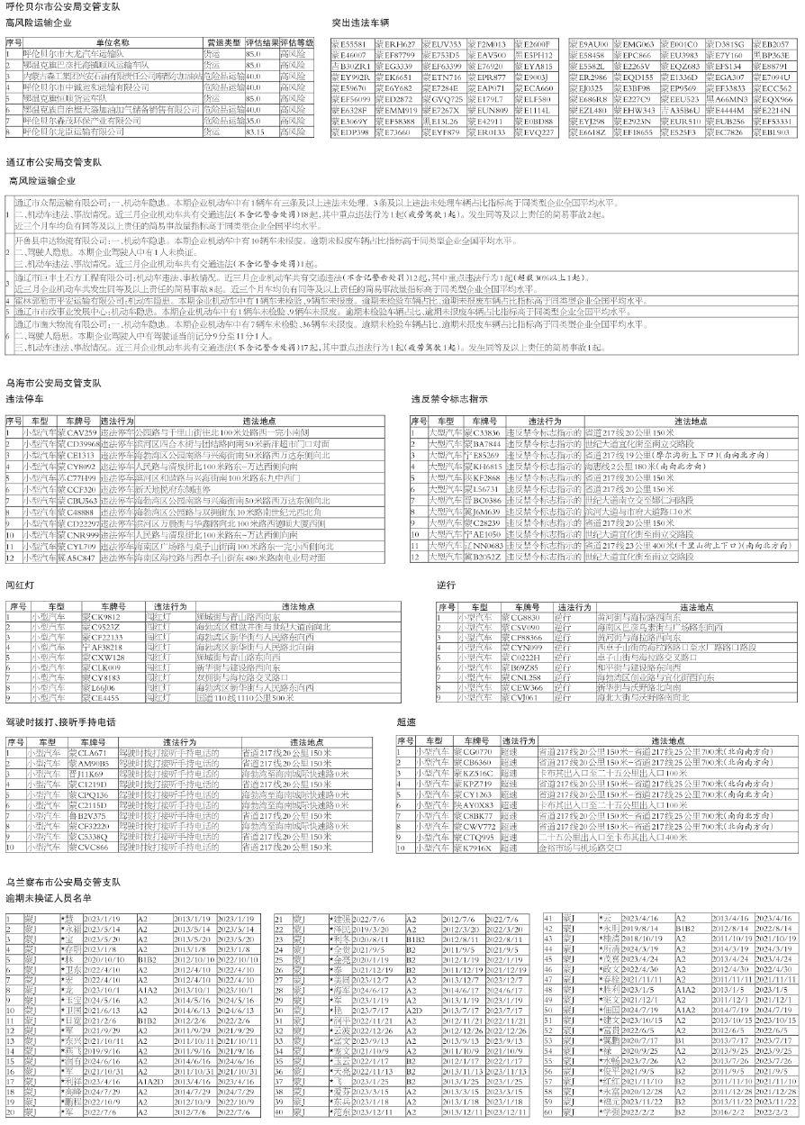 全区公安交管部门查处违法车辆、企业、行为人等曝光名单