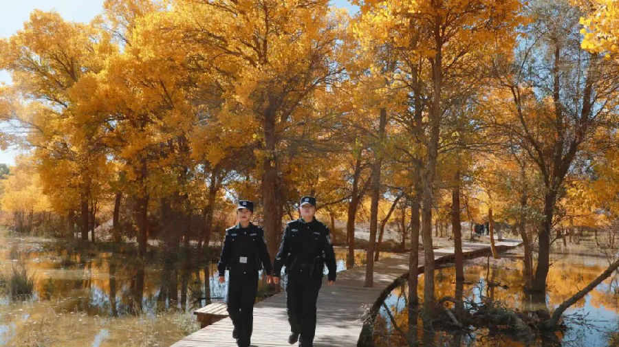 如今,“一湖两海”中的呼伦湖有了生态警务室,专门组建了水警队,配备巡逻艇、水下探测仪等专业设备,构建了“湖面巡逻+岸线检查+视频监控”动态防护网,实现“水陆联动”,在查处非法捕捞、非法排污等违法犯罪行为和保障景区游客安全方面发挥着重要作用;阿拉善盟额济纳旗公安局依托额济纳胡杨林国家级自然保护区的区位优势,建立了巴彦陶来生态旅游警务室,真正做到了“融警于景”,在全天候巡防保护胡杨林资源的同时,兼顾了生态旅游警务工作。