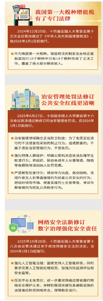 一批法律新规1月起施行