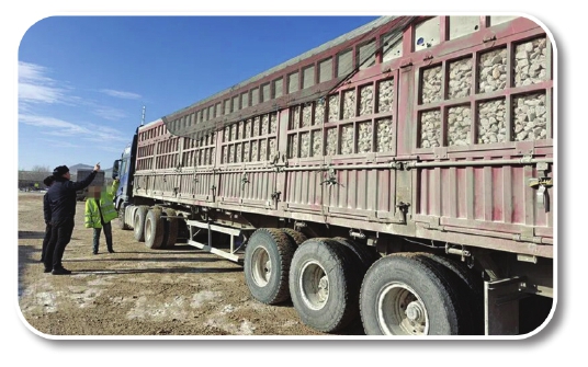 当日,该大队接到群众举报:天山镇东国道303线有多辆超载货车行驶,严重威胁道路交通安全。接警后,民警迅速响应,在省道210线与国道303线交叉口设卡,成功查获两辆严重违法的超载货车。