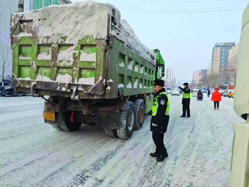 本报讯(记者包聪颖通讯员申丹)近日,通辽市再次迎来降雪降温天气,路面湿滑结冰,能见度下降,给群众出行和行车安全带来了极大隐患。为做好雪天道路交通管理工作,通辽市公安交管部门以雪为令,立即启动恶劣天气应急预案,全员坚守执勤一线,全力保障道路交通安全畅通。