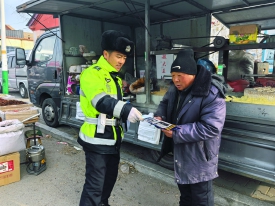 1月21日,巴彦淖尔市公安局交管支队乌拉特前旗大队白彦花国道巡逻中队组织民警走进当地集市,面向商户、摊贩及农牧民群众开展交通安全宣传活动。活动中,民警结合冬季出行特点和农村常见交通风险,重点讲解了农用车违法载人、骑乘电动车不戴头盔、酒驾醉驾、超员超载等违法行为的危害,并用当地方言结合案例进行普法。同时,民警广泛征集群众对交管工作的意见建议,解答相关咨询,为进一步优化交管工作奠定了良好基础。 刘鑫摄
