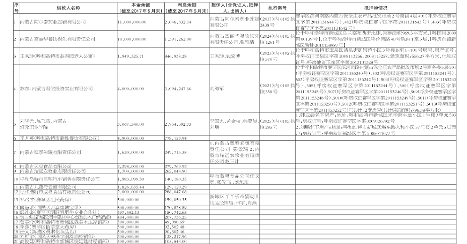 根据内蒙古呼和浩特金谷农村商业银行股份有限公司与中国长城资产管理股份有限公司内蒙古自治区分公司签署的《资产转让合同》,内蒙古呼和浩特金谷农村商业银行股份有限公司于2017年11月22日将清单所列债权(包括对公告清单所列借款人及担保人享有的主债权及借款合同、担保合同、抵债协议、还款协议和其他相关协议项下的全部权利)依法转让给中国长城资产管理股份有限公司内蒙古自治区分公司。