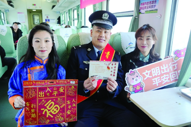 2月2日,2026年春运大幕正式拉开。为守护广大旅客平安返乡、欢度新春,呼和浩特铁路公安机关科学谋划、精心部署,开展了一系列“走实又走心、有趣更有料”的主题宣传活动,将反诈防骗、高铁防盗、危险品禁带等安全知识传递给旅客,以坚守与温情为春运保驾护航,让每一位旅客都能带着安全常识、怀着温暖期盼奔赴团圆之约。