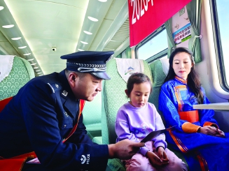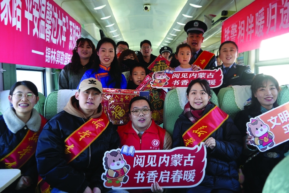 锡林郭勒讯春运首日,锡林浩特铁路公安处紧扣“平安春运”工作部署,联合锡林郭勒盟新华书店,在K7922次列车上启动了“春运首日护出行铁警书香伴旅途”主题宣传活动,将安全理念传递给每一位旅客,用责任与温情为春运护航。