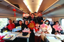 在D6762次“春运首日主题列车”上,红彤彤的福字、灯笼将车厢装点得暖意融融。民警合唱的《上春山》旋律轻快,瞬间点燃现场气氛;马头琴独奏《美丽草原我的家》赢得旅客阵阵掌声。文艺表演间隙,防盗防骗演示环节干货满满--民警现场示范背包前置、贵重物品贴身存放等实用技巧,并邀请旅客参与体验,详细讲解出行安全注意事项。有奖知识问答环节围绕行李存放、警惕陌生转账、易燃易爆物品禁带规定等内容展开,旅客们积极参与、踊跃抢答,在轻松互动中强化了安全意识。