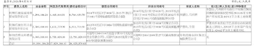 根据中国信达资产管理股份有限公司内蒙古自治区分公司与内蒙古金汇联合投资有限公司达成的债权转让安排,中国信达资产管理股份有限公司内蒙古自治区分公司将其对公告清单所列借款人及其担保人享有的主债权及担保合同项下的全部权利,依法转让给内蒙古金汇联合投资有限公司。现双方特公告通知各借款人及担保人,资产明细如下: