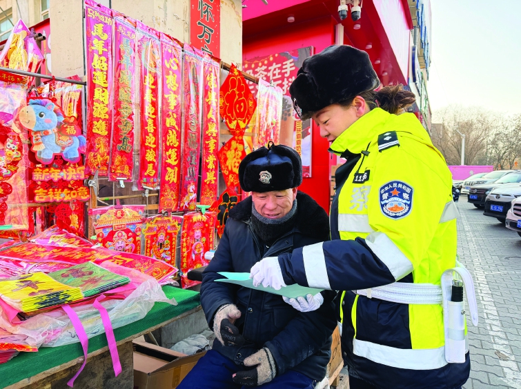 为扎实做好春运交通安全宣传工作,日前,巴彦淖尔市公安局交管支队五原县大队组织警力走进辖区年货市场开展交通安全宣传活动,为群众送上一份“新春平安礼”。活动中,民辅警向过往群众和商户发放交通安全宣传资料,面对面讲解春运出行安全注意事项。同时,民辅警现场劝导不规范停车、占道经营等行为,引导商户和群众自觉维护道路通行秩序。