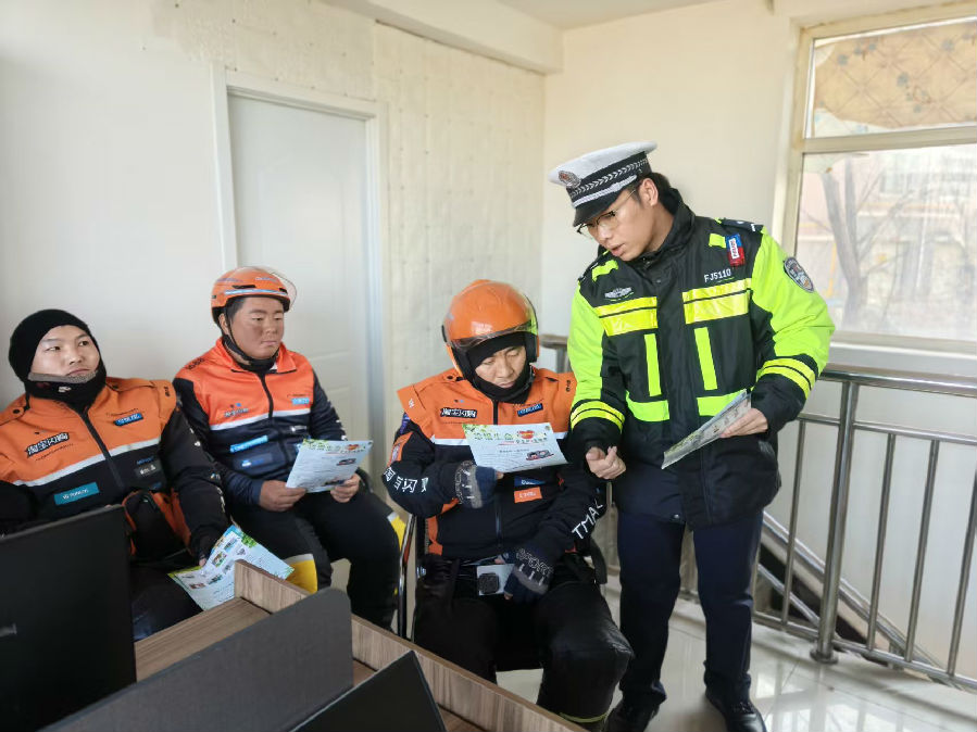 阿拉善讯为切实提升外卖配送人员的冬季出行安全防护能力,有效预防涉骑手道路交通事故,近日,阿拉善盟高新区公安分局交管大队民警走进外卖企业,开展“冬季安全配送”主题宣传教育活动,为城市“奔跑者”送上专属安全保障。