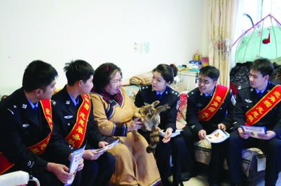 2026年春运期间,海拉尔铁路公安处组建“狍角帽志愿服务队”,以“安全宣传+文化传承”为核心开展志愿服务。服务队民警走进鄂伦春族牧户家中,聆听鄂伦春族阿姨讲述狍角帽的实用价值与文化内涵。同时,民警用通俗易懂的语言讲解反诈知识、铁路安全知识,赢得了群众的暖心称赞。 宋昊阳摄
