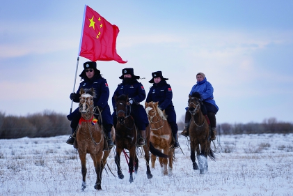 “今天气温低,要做好防寒措施,手套戴最厚的,准备好了上马出发。”额布德格边境派出所所长包海生既是所长又是巡防队队长,他一边勒紧马鞍一边招呼大家出发。“这里夏季泥泞翻浆,冬季积雪覆盖,辖区225平方公里区域内大部分不通公路、也没有信号,58户牧民居住分散。成立赫力沁巡防马队,就是想第一时间赶到群众最需要的地方。”巡逻中,包海生介绍,巡防队除服务群众外,还承担着“中蒙第一桥”额布都格口岸及38.125公里中蒙边境线的安全守护、管护责任。
