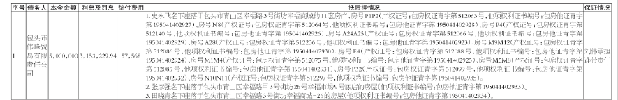 1.以上清单仅列示截至基准日的本金余额和利息余额,借款人和担保人应予偿还的迟延履行金、费用及其他应收款项(如有)按债权合同[包括但不限于借款合同、抵(质)押合同、保证合