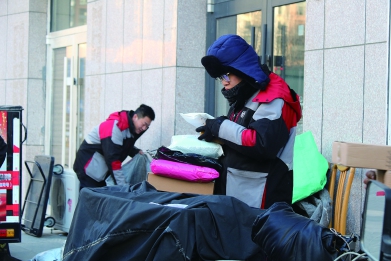 随着时间推移,分区堆放的快件在忙碌中渐次装车。一辆辆电动三轮车陆续驶出网点,汇入城市的车流中。那些奔波的身影,载着沉甸甸的年货,奔向等待期盼的人们。