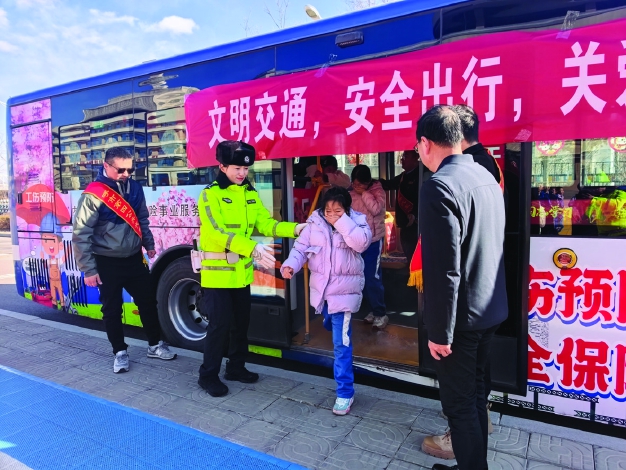 连日来,呼和浩特市公安局交管支队赛罕区大队民辅警深入校园开展“交通安全第一课”活动。民辅警通过讲解宣传手册、组织学生体验车辆盲区等方式,引导同学们自觉遵守交通法规、安全文明出行。同时,该大队联合呼和浩特公交四公司开展“知危险、会避险”文明交通安全出行主题活动,宣传讲解安全乘车知识,并开展公交车消防演练,切实提升了学生的自我防护意识。 乌兰摄