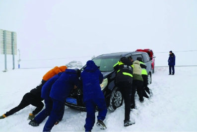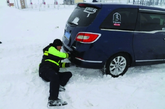 陈巴尔虎旗公安局科学调配警力,开展不间断巡逻防控。巡逻途中,民辅警发现一辆小型轿车因积雪过厚、操作不当打滑被困,立即上前展开救援。风雪中,民辅警一边奋力铲雪,一边指挥引导过往车辆安全通过。经过20多分钟的紧张救援,被困车辆成功从积雪中驶出,驾驶人感动地说:“这次我真切感受到了‘人民警察为人民’这句话的意义!”