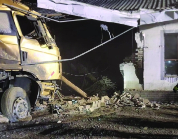 民警抵达现场后看到,一辆重型货车径直撞上民房,房屋局部结构受损坍塌,砖石、建材散落一地。报警人向民警讲述,事发时自己正在隔壁房间休息,突然听到一声巨响,出门查看时发现一辆货车撞进屋来,但现场并未见到货车驾驶人。