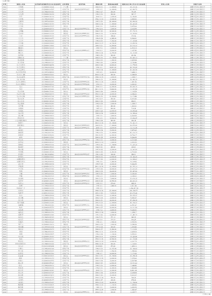 中国农业银行股份有限公司赤峰分行债权催收公告
