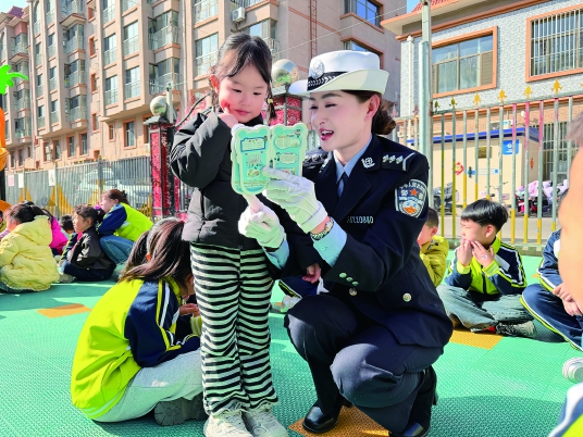 为提升幼儿的交通安全意识和自我保护能力,日前,巴彦淖尔市公安局交管支队五原县大队宣传民警走进辖区幼儿园开展了一场别开生面的交通安全知识讲座,将交通安全的种子播撒在孩子们心中。活动现场,民警结合孩子们的认知特点,用生动有趣的语言给孩子们讲解了红绿灯、斑马线等基础交通常识,并通过互动提问的方式引导孩子们积极举手发言,在轻松愉快的氛围中掌握交通规则。讲座结束后,民警还为孩子们发放了交通安全主题卡片,鼓励孩子们争做“小小交通安全宣传员”,把学到的知识分享给家人,让交通安全走进每个家庭。