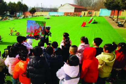 近日,通辽市库伦旗公安局交管大队民辅警走进辖区幼儿园,开展“开学第一课”交通安全宣传活动。活动中,民辅警采用儿歌、动画、互动问答、情景模拟等孩子们喜闻乐见的形式,细致讲解交通安全基础知识,让孩子们在轻松愉快的氛围中树立交通安全意识,并带动家长、老师自觉遵守交通法规,形成“教育一个孩子、带动一个家庭、影响整个社会”的宣传氛围。 贾兵摄