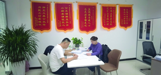 “这几位老人都超龄了,无法走劳动仲裁程序。钱虽然不多,但都是老人们的血汗钱。”调解员孙爱萍回忆说:“更麻烦的是,这事还牵扯到新旧物业的平稳交接,小区200多户业主都在观望。”在对群众反映的问题进行综合评估后,综治中心立即启动了联动机制。当天下午,街道办副主任、涉事小区所在的社区负责人、人社部门工作人员、公益律师便齐聚调解室。接下来的3周时间里,工作人员跑了十几趟社区,与新中标的物业公司进行了多轮协商。