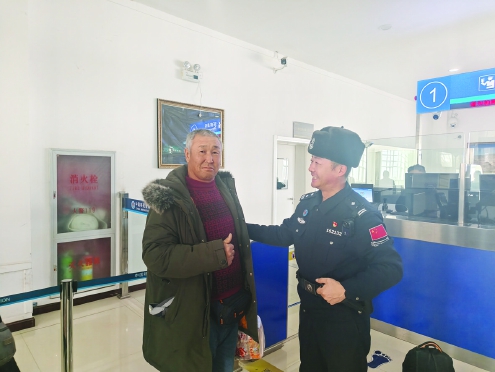 近日,载有24名来华就医旅客的大巴车经满都拉口岸出境,其中6名旅客行动不便、行李较多,通关存在困难。包头边检站执勤一队接到通报后,立即启动特殊旅客通关保障机制。值班领导现场协调,对接联检单位协同配合;执勤民警全程协助行动不便旅客快速通关。蒙古国旅客斯琴毕力格对边检民警的暖心服务竖起大拇指,连连称赞。