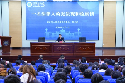 在国家宪法日,检察长郎显成以兼职教授的身份走进内蒙古民族大学,为学子们带来了《一名法律人的宪法观和检察情》专题讲座。结合多年的检察工作经历,他用一个个鲜活的案例、一段段深刻的感悟,将宪法精神与检察担当有机融合,为学子送上了一堂干货满满的法治课。