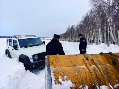 阿里河讯近日,受强降雪天气影响,内蒙古大兴安岭森林公安局大杨树分局辖区部分路段出现严重积雪结冰。民警在林区巡逻时,发现一辆私家车被困雪中,经过十余分钟的救援,成功帮助车辆脱困。