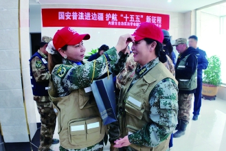 “感谢你们的默默坚守,你们是国家安全的忠诚守护者!”在边境护边驿站,普法宣传队工作人员将印有“国家安全机关举报电话:12339”的巡边装备和米面粮油等爱心物资逐一递到护边员手中。这份关怀,让坚守一线的护边员们倍感温暖。
